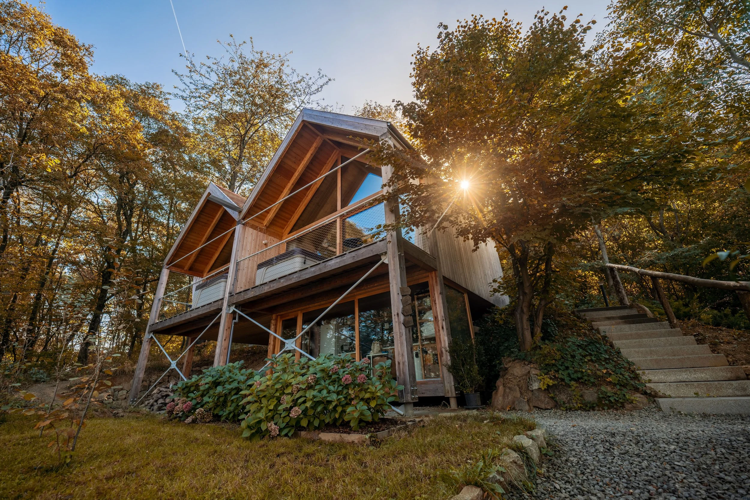 A csorgadozó patak és az erdő hangjai is segítenek a teljes kikapcsolódásban.